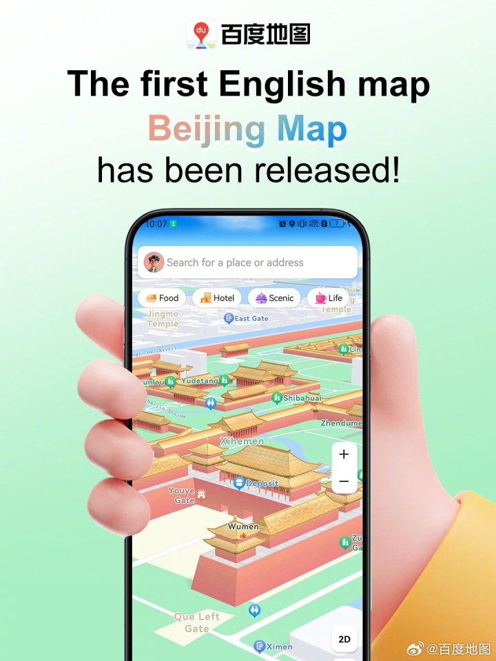 IT之家1月22日消息,百度地图今日发文宣布上线全国首个英文版地图BeijingMap,便于国外友人在中国的生活、旅游。